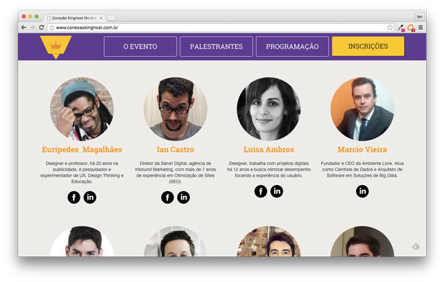 Esse ano o Conexão KingHost Online 2015 realizará sua 4ª edição com o tema “Desenvolver para Conquistar” e, diferente dos anos anteriores, o evento será 100% online – com 20h de conteúdo sobre as tendências e aplicações do mundo digital. O evento contará com 13 palestras irão abordar táticas e estratégias WEB para mudar a desenvolver (ou melhorar) seu negócio online. Curtiu? As inscrições estão abertas 🙂